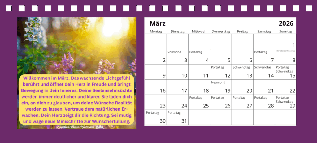 Das wunderschöne Neue wartet bereits auf uns. So auch der von mir selbst gestaltete Portaltag-Kalender für 2026, in leuchtenden, schönen Farben. Danke von Herzen für die vielen Nachrichten mit den Wünschen nach einem Portaltag-Kalender. Es war mir eine Freude, ihn für euch zu gestalten.